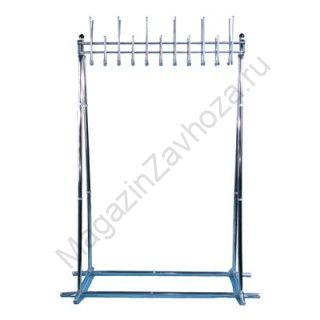 Групповая вешалка на 22 крючка. Вешалка выполнена из нержавеющей стали. Крючки вешалки выполнены из трубы диаметром 10 мм. Вешалка поставляется в разобранном виде, в картонной таре. Эта модель вешалки может использоваться как фрагмент для обустройства гардеробных комнат.