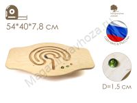Тренажёр изготовлен из высококачественной березовой фанеры, тщательно отшлифован и покрыт безопасным лаком.Тренажёр выполнен в форме овала.. Глубина жёлоба 0,7 см. В комплект входят 3 стеклянных шарика, ? ==шарика 1,5 см.