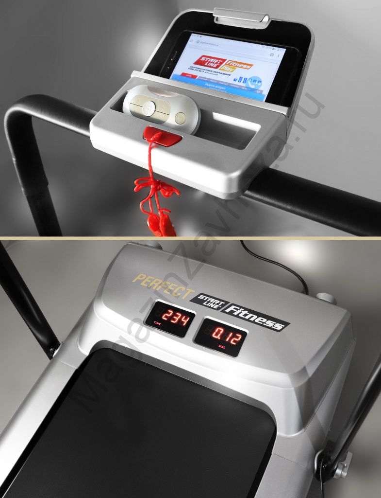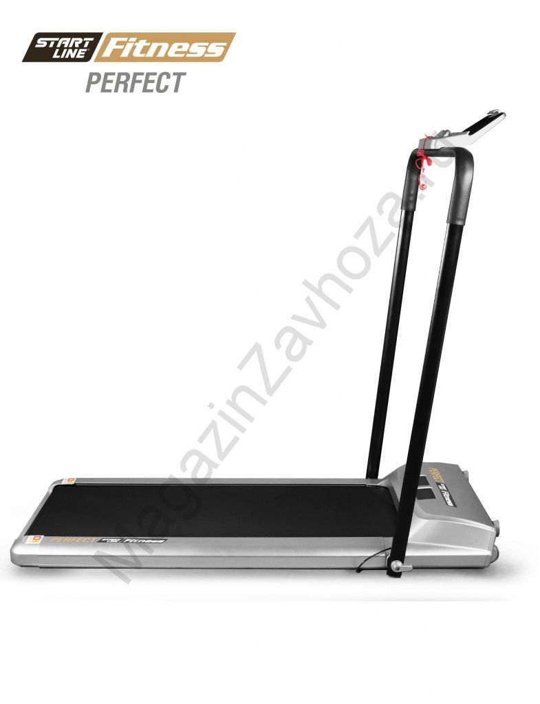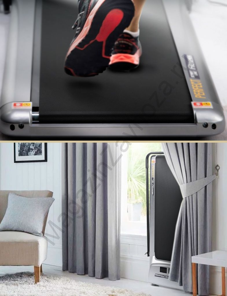 Беговая дорожка для ходьбы Perfect – функциональный и надежный тренажер по доступной цене, предназначен для ежедневных домашних тренировок. Имеет базовый набор функций и пульт дистанционного управления. Все основные параметры выводятся на светодиодный экран: время, скорость, расстояние, подсчет калорий. Сканирующий режим позволяет регулировать настройку текущей скорости, определять расход энергии и пройденную дистанцию. Легко выставить целевые показатели в соответствии с уровнем физической нагрузки. На панели предусмотрен держатель мобильного телефона и планшета, поэтому во время тренировок вы можете общаться с друзьями или смотреть фильмы. Для дополнительной безопасности на поручне расположена кнопка аварийной остановки. Для этой модели характерно плавное движение бегового полотна, его размеры оптимальны для комфортных занятий. Удобное перемещение тренажера обеспечивают транспортировочные колеса. В сложенном виде тренажер занимает минимум пространства и легко поместится даже под кроватью.. Беговая дорожка Perfect прекрасно сочетает надежность и инновации, имеет массу достоинств среди всех разновидностей кардиотехники. Например: Это отличный инструмент для похудения. Он помогает эффективно бороться с лишними килограммами. Регулярные занятия нормализуют работу сердца, повышается выносливость организма. Наличие встроенных датчиков, показывающих основные параметры тренировки, дают установить подходящий режим и нагрузку.