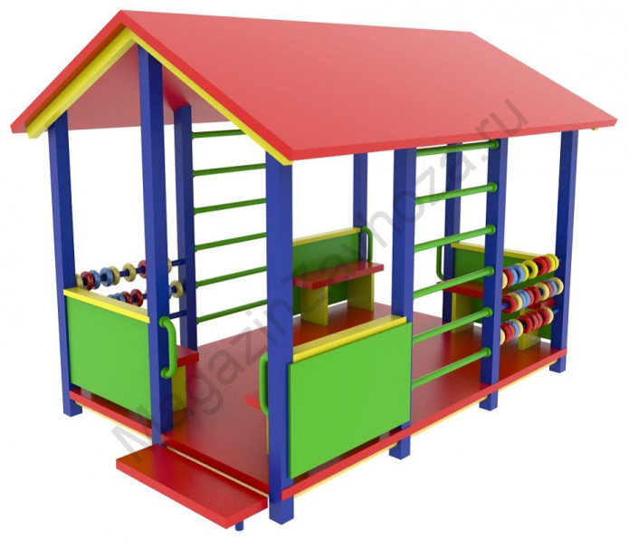 Артикул: ДИ-45 Размер: 2000*1700*1650 mm Возможно изготовление по Вашим размерам с учетом нормативов ГОСТ. Используемые материалы: фанера березовая ФСФ (повышенной влагостойкости),клееный брус Лакокрасочное покрытие: трехкомпонентная краска, повышенной стойкости к сложным погодным условиям, истиранию, воздействию ультрафиолета.