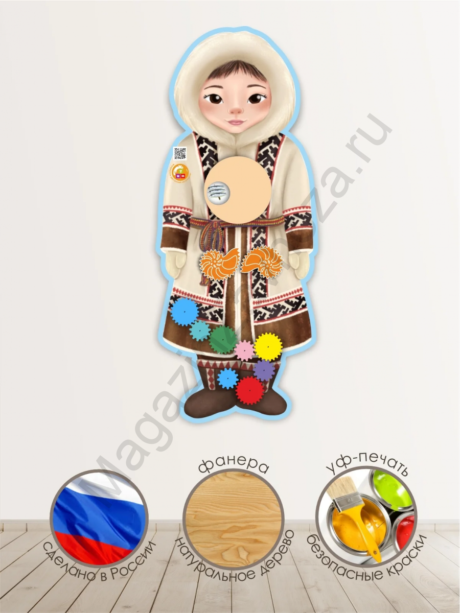 Бизиборд помогает познакомить детей с культурой народов Севера, развивать моторику, мышление, координацию и познавательный интерес через игровые механизмы.