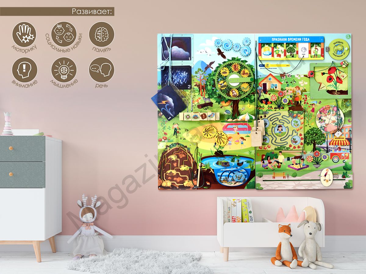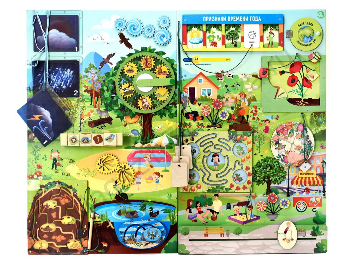 Бизиборд (дидактическая панель) настенный ЛЕТО. Серия ЭКОЛОГИЧЕСКОЕ ВОСПИТАНИЕ