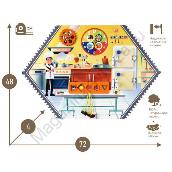 Бизиборд (дидактическая панель) настенный ПОВАР. Серия ИЗУЧАЕМ ПРОФЕССИИ