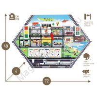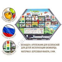 Размер бизиборда: 720*480*60 мм, он оснащен 4 крепежами для безопасной эксплуатации. Данный бизиборд можно купить как самостоятельную панель, так и в составе КМО Комплекта бизибордов и декоративных панелей для оформления стены ГОРОД ПРОФЕССИЙ (ИО-478).