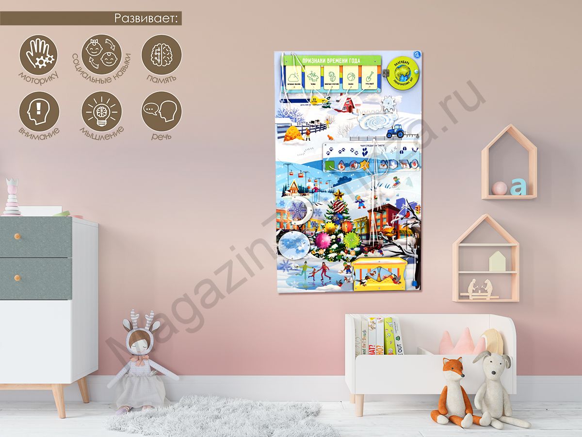 Бизиборд (дидактическая панель) настенный ЗИМА. Серия ЭКОЛОГИЧЕСКОЕ ВОСПИТАНИЕ