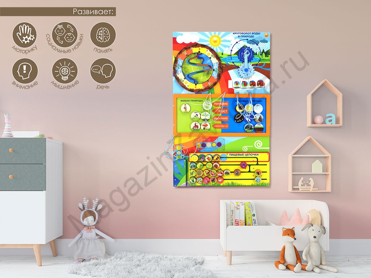 Бизиборд (дидактическая панель) настенный ЖИВАЯ - НЕЖИВАЯ ПРИРОДА. Серия ЭКОЛОГИЧЕСКОЕ ВОСПИТАНИЕ