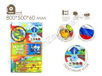 Размер бизиборда: 800*500*60 мм, он оснащен 4 крепежами для безопасной эксплуатации бизиборда.