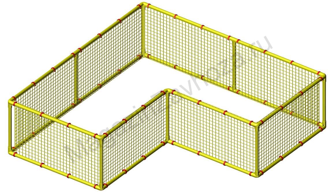 Лёгкий Г-образный манеж. При использовании с пазловым дном манеж можно заполнить шариками. Это самое любимое развлечение детей. Раньше бассейны с шариками можно было найти только в больших торговых центрах, например, в ИКЕА. Теперь большие бассейны с шариками -- дома и на даче! Указаны вутренние размеры манежей, внешние размеры больше на 10 см. Для заполнения до половины нужно 7 коробок шариков. Вес -- 13 кг. Площадь -- 3 м2.
