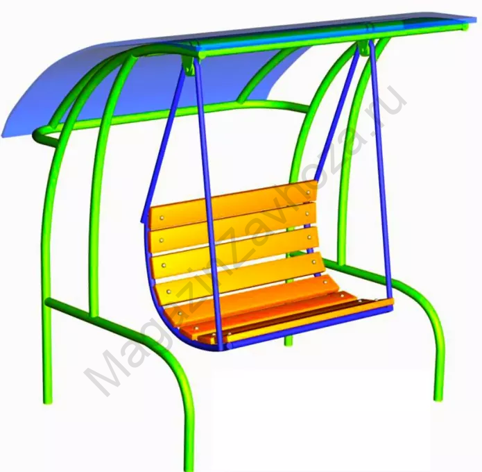 Артикул: ДК-6 Размер: 2100*1500*2200, сиденье 1200 mm Возможно изготовление по Вашим размерам с учетом нормативов ГОСТ. Используемые материалы: фанера березовая ФСФ (повышенной влагостойкости),труба металлическая Лакокрасочное покрытие: металл - полимерно-порошковое по каталогу RAL. Фанера - трехкомпонентная краска, повышенной стойкости к сложным погодным условиям, истиранию, воздействию ультрафиолета.