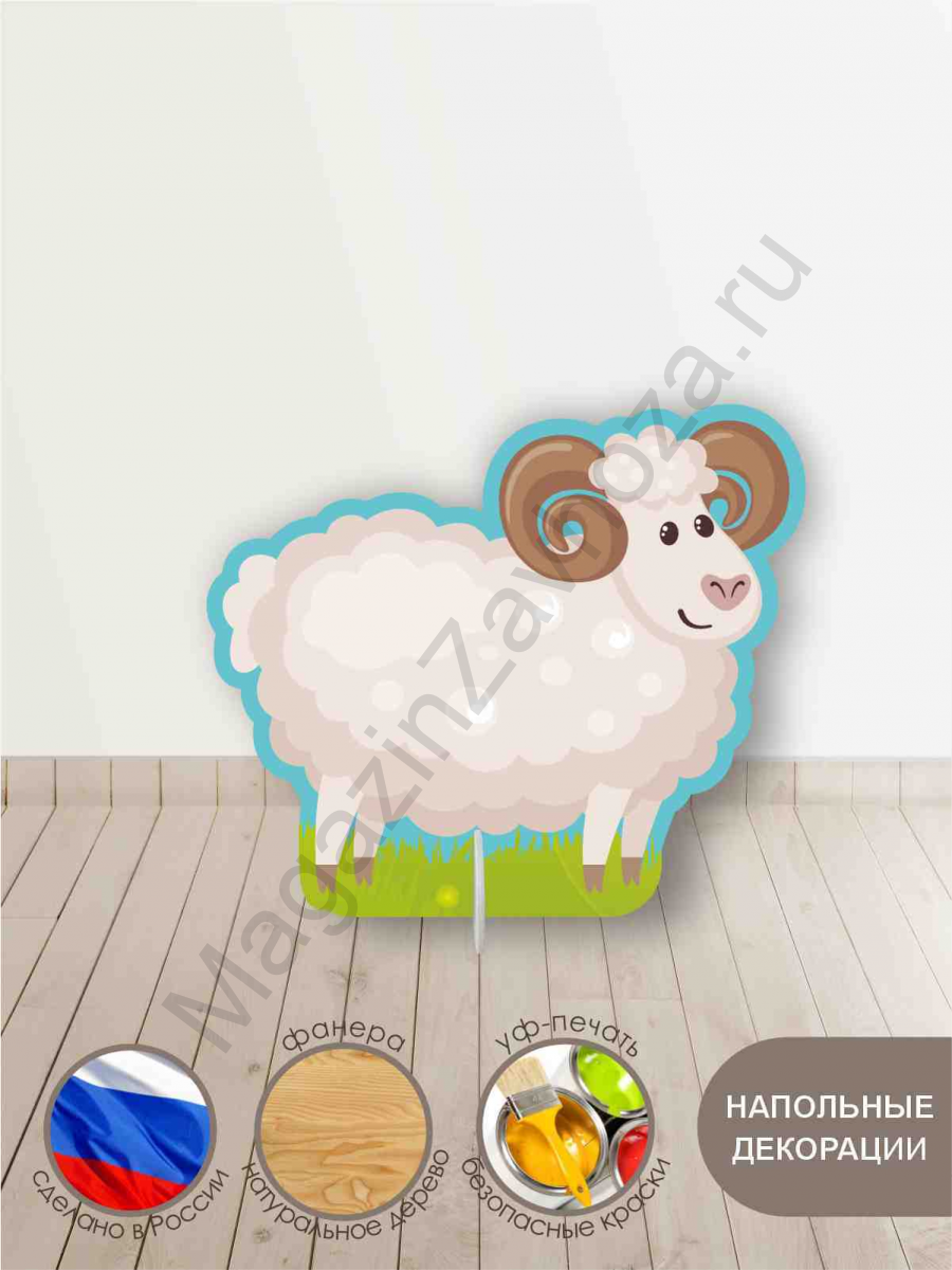 Размер декорации 400*467 мм Сделано в РОССИИ. Материалы: Фанера березовая 6 мм, марка – ФК, качество ½. Прочное покрытие, без запаха, гипоаллергенно, безопасно для детей. Прямая УФ печать по дереву (яркое изображение, не сотрется со временем). Все материалы экологичны, безопасны для детской продукции.