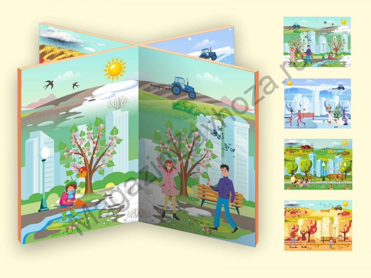 Декорация (ширма напольная) для сюжетно-ролевой игры 4 в 1 ВРЕМЕНА ГОДА
