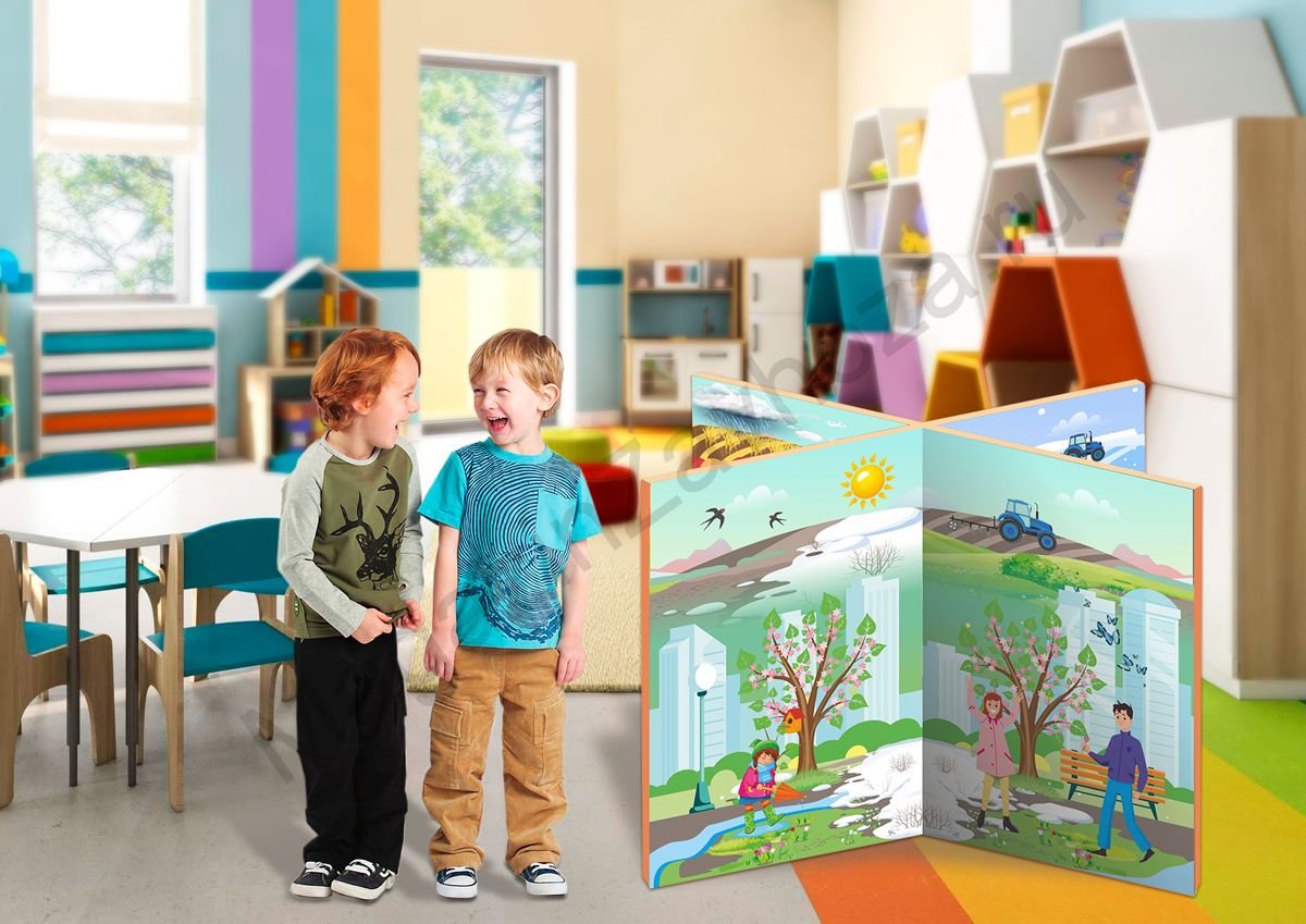 Ширмы-книги способствуют созданию тематического пространства Времена года, а именно: Зима, Весна, Лето, Осень