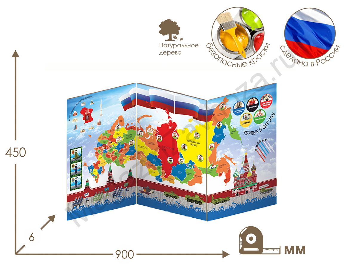 Настольная двухсторонняя ширма-гармошка состоит из 3 подвижных частей, высота 45 см, длина 90 см. Нанесенный рисунок позволяет создать тематического пространства ГОРЖУСЬ РОССИЕЙ. Напольные и настольные ширмы, как элемент развивающей предметно-пространственной среды позволяет решить несколько задач.