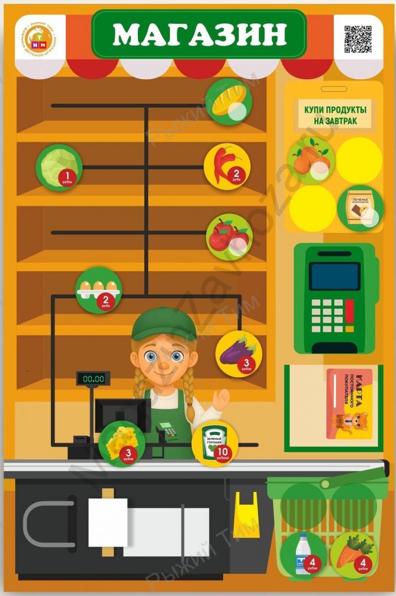 Поддерживает ролевые игры «Покупатель-продавец» и формирует представление о реальных жизненных ситуациях.