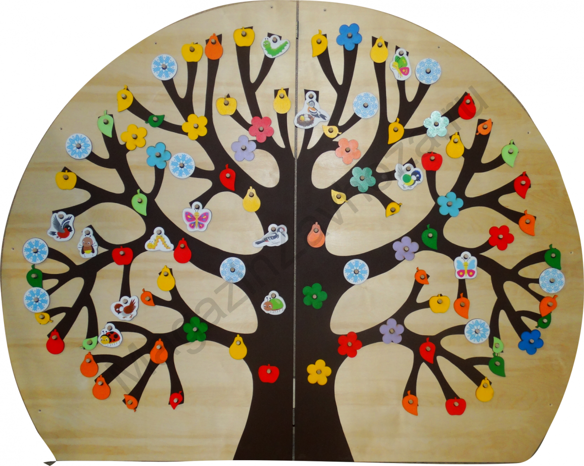 Панель предназначена, прежде всего, для познавательного развития ребенка: формирования представлений об окружающем мире (например, строение дерева, сезонные изменения в природе «Какого цвета листики на осеннем дереве»); сенсорного развития (например, знакомство с цветом и величиной «Собери все оранжевые листики», «Найди синие цветочки», «Сними с дерева большие листики»); развития мышления (например, сравнение, сопоставление пространственных представлений: «Найди большой зеленый листик и повесь на правую верхнюю веточку», «Желтое яблоко — на веточку слева»; развитие элементарных математических представлений: «Дай мне 3 цветочка разного цвета», «Листочков какого цвета на дереве больше?»).