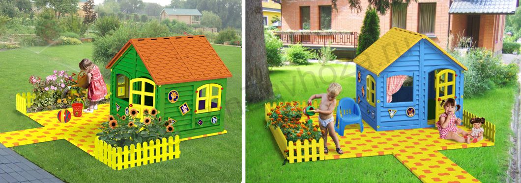 Панели домика сделаны из пластика толщиной 2,5 мм, что делает его достаточно прочным для использования, например, на уличных площадках детских садов, а не только дома и на даче.