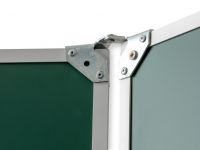 Рабочая поверхность изготовлена из стального эмалированного листа, обрамление — высокопрочный алюминиевый профиль, благодаря чему имеет высокую износоустойчивость и прочность. Имеется лоток для мела/маркера и принадлежностей.