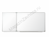 Двухэлементная магнитная школьная доска, предназначена для письма мелом и маркером, имеет матовое антибликовое покрытие, которое обеспечивает четкую видимость изображений под любым углом зрения.