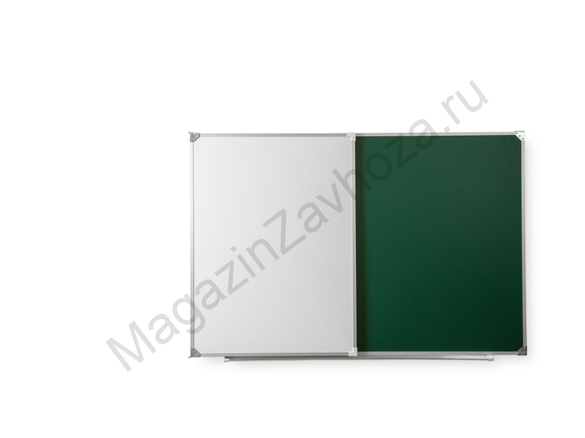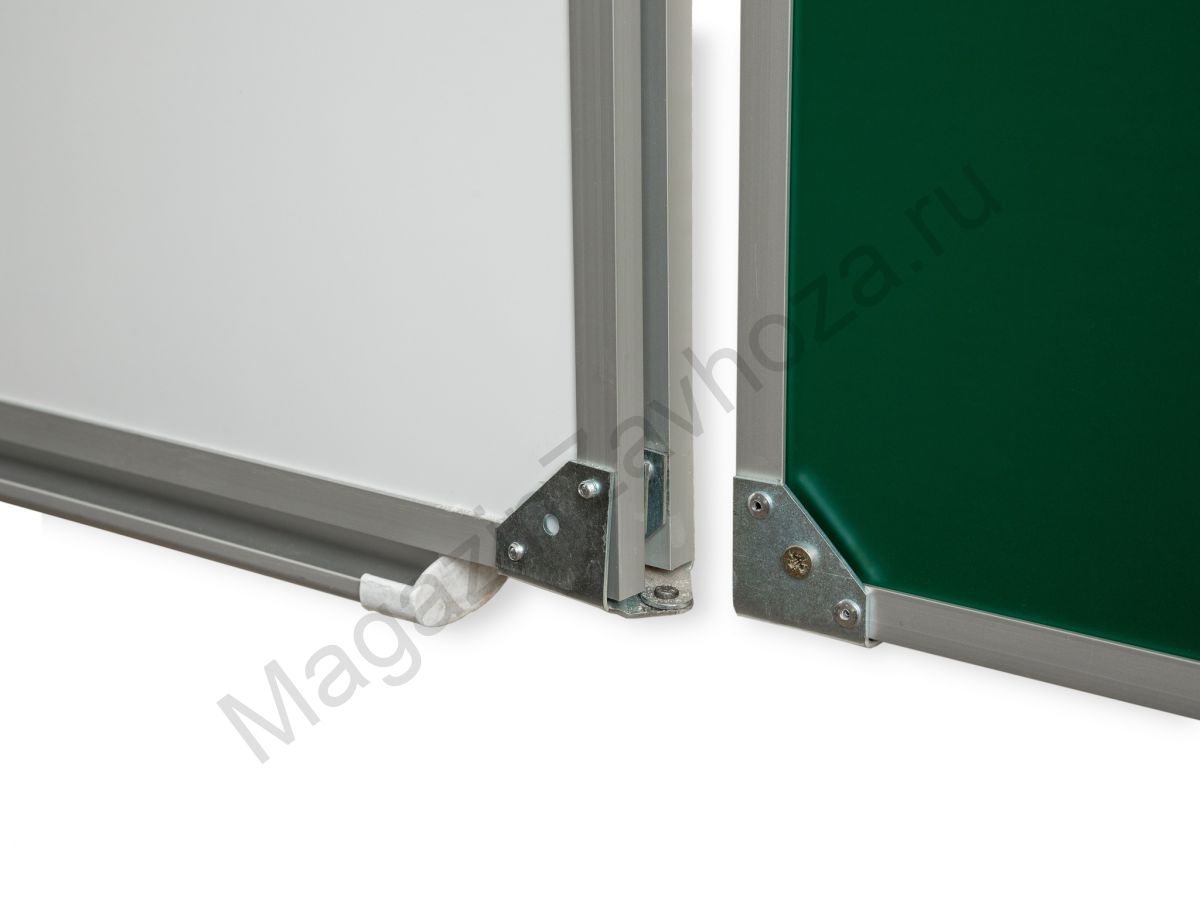 Двухэлементная магнитная школьная доска, предназначена для письма мелом и маркером, имеет матовое антибликовое покрытие, которое обеспечивает четкую видимость изображений под любым углом зрения.