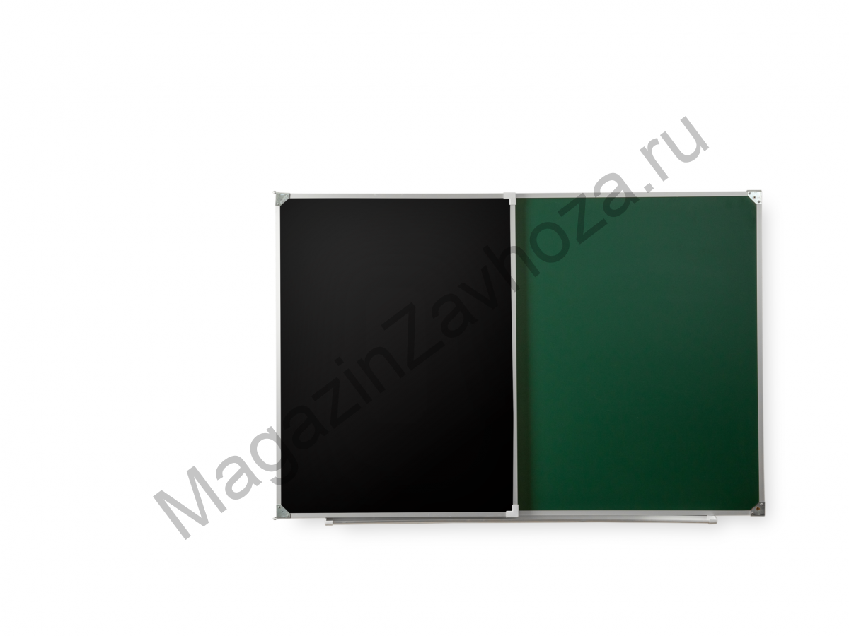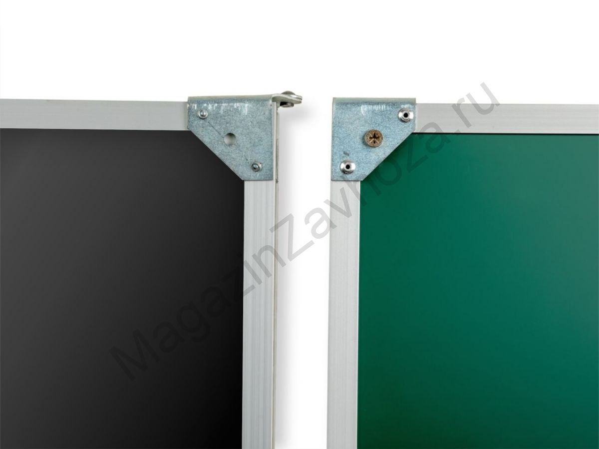 Двухэлементная магнитная школьная доска, предназначена для письма мелом и маркером, имеет матовое антибликовое покрытие, которое обеспечивает четкую видимость изображений под любым углом зрения.