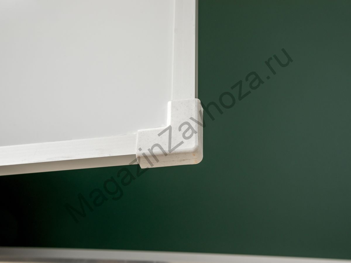 Рабочая поверхность изготовлена из полимерного листа высочайшего качества, обрамление — высокопрочный алюминиевый профиль, благодаря чему имеет высокую износоустойчивость и прочность. Имеется лоток для мела/маркера и принадлежностей.