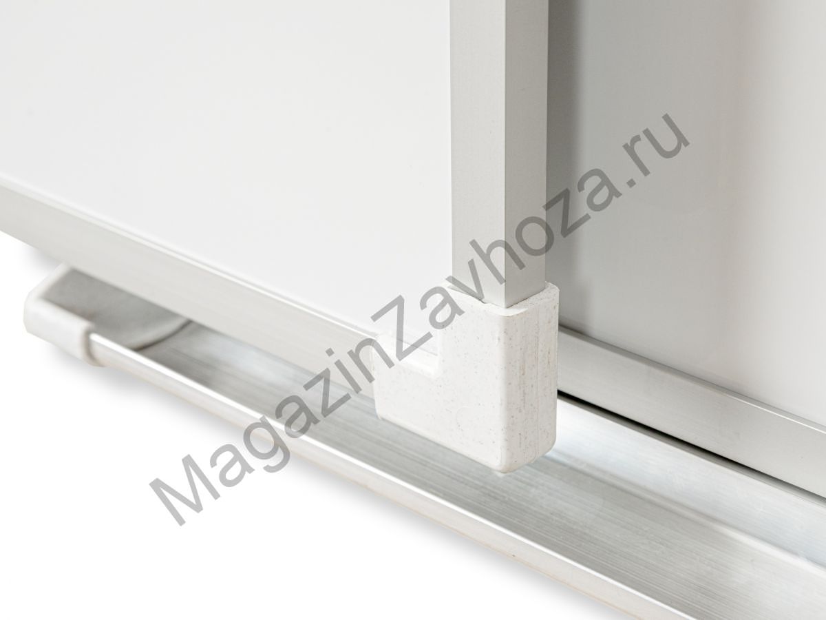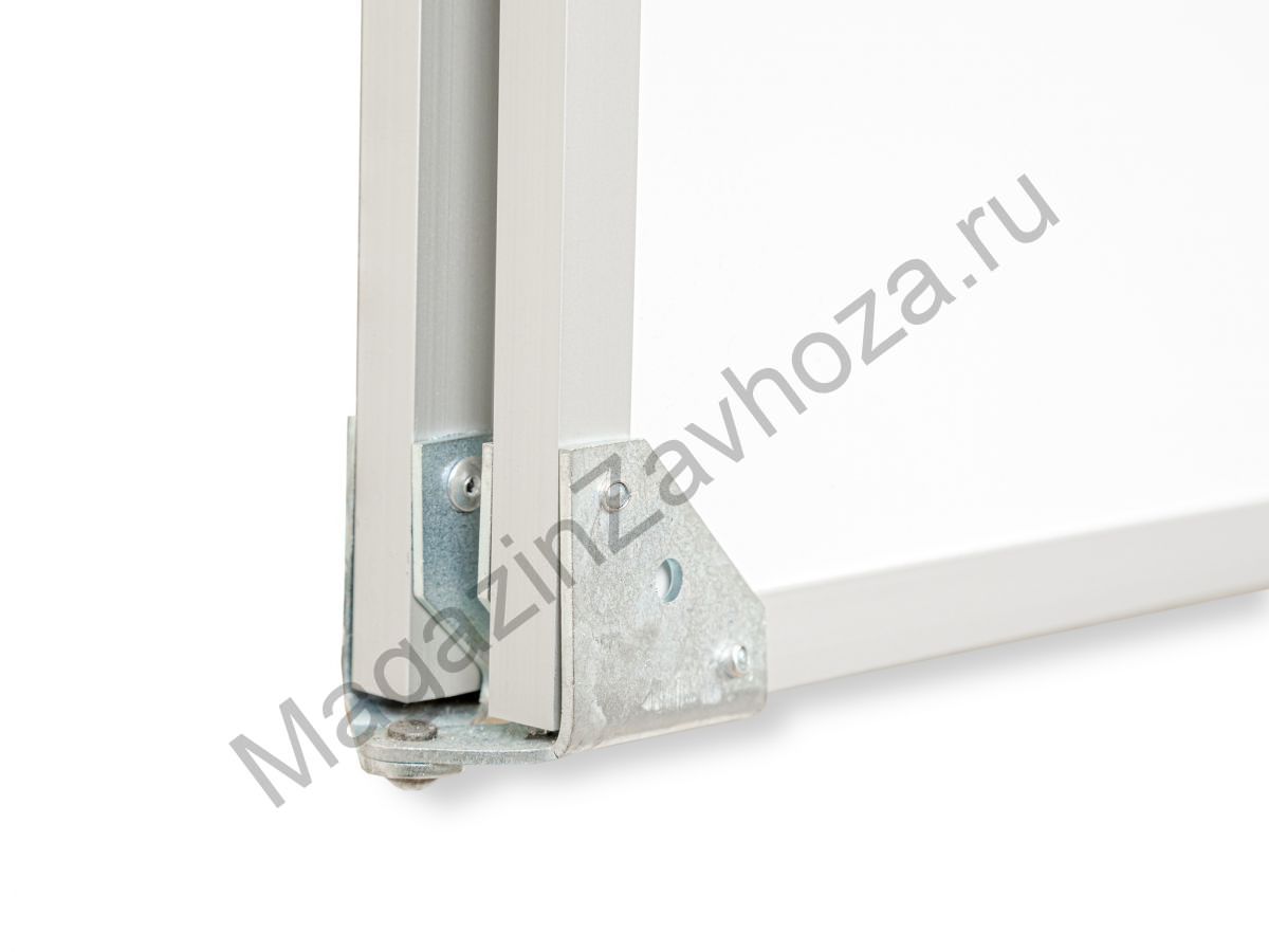 Рабочая поверхность изготовлена из стального полимерного листа, обрамление — высокопрочный алюминиевый профиль, благодаря чему имеет высокую износоустойчивость и прочность. Имеется лоток для мела/маркера и принадлежностей.