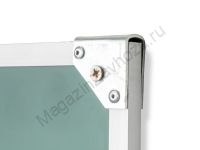 Рабочая поверхность изготовлена из полимерного листа высочайшего качества, обрамление — высокопрочный алюминиевый профиль, благодаря чему имеет высокую износоустойчивость и прочность. Имеется лоток для мела/маркера и принадлежностей.