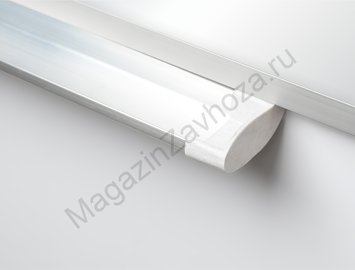 Рабочая поверхность изготовлена из полимерного листа высочайшего качества, обрамление — высокопрочный алюминиевый профиль, благодаря чему имеет высокую износоустойчивость и прочность. Имеется лоток для мела/маркера и принадлежностей.