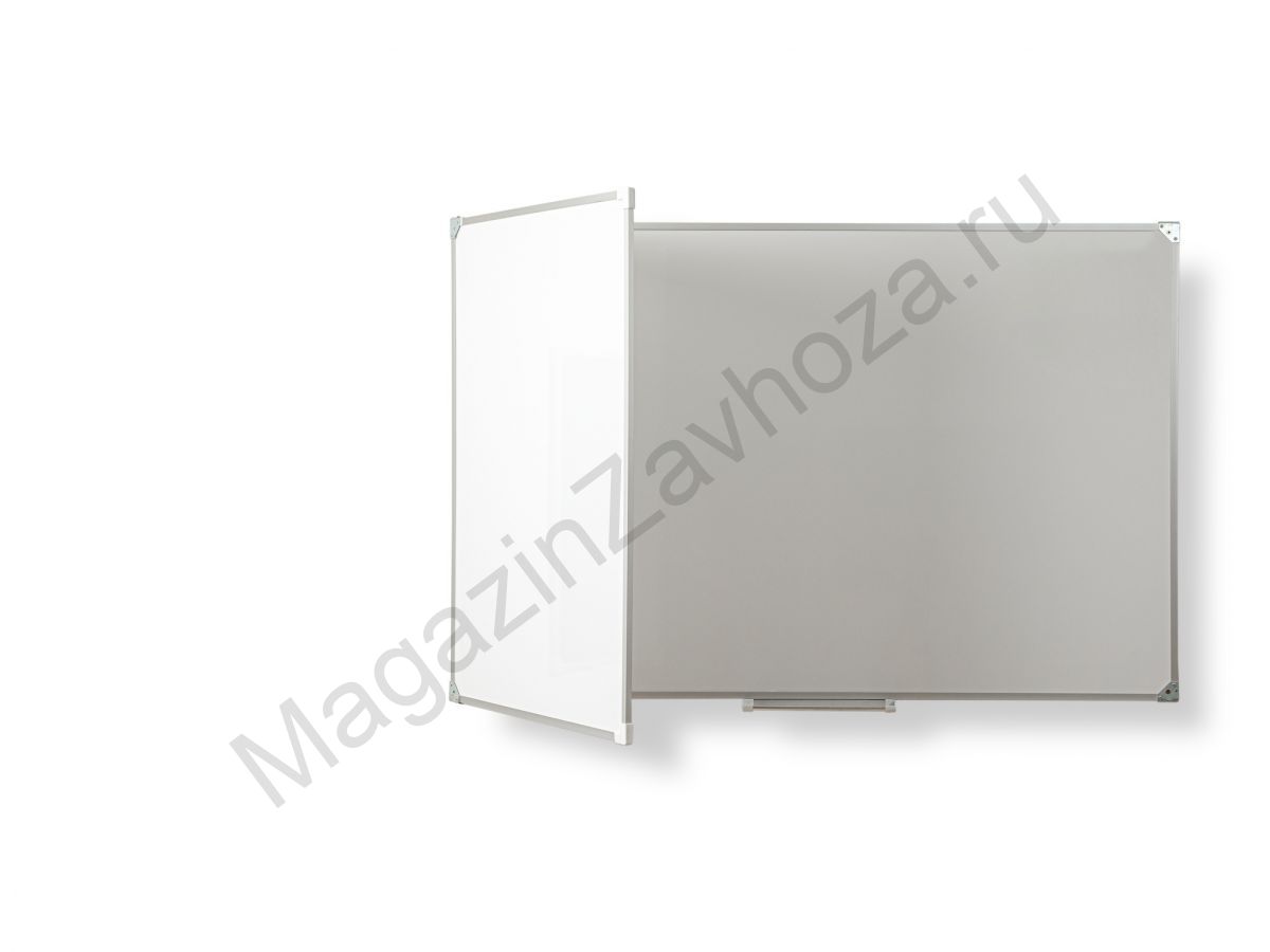 Двухэлементная магнитная школьная доска, предназначена для письма мелом и маркером, имеет матовое антибликовое покрытие, которое обеспечивает четкую видимость изображений под любым углом зрения.