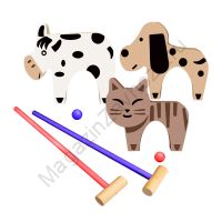 Из МДФ 25мм. Краска. Лак. Трафаретный рисунок. Шарик из массива: диаметр 40мм - 2шт. Размеры фигурки: 200х25х200мм - 3шт. Размеры молотка: 600х40х200мм - 2шт.
