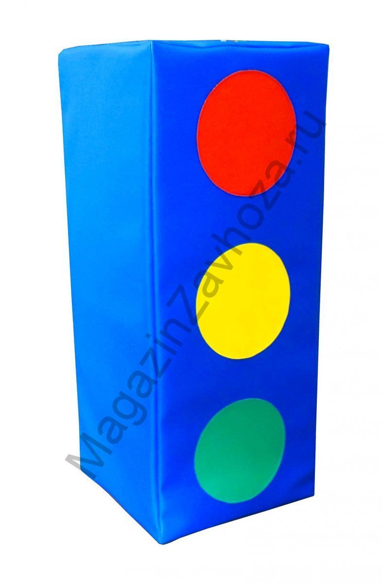 Размер(см): 25*25*60. Мягкий модуль «Светофор» используется в качестве наглядного материала при изучении правил дорожного движения, а также в сюжетно-ролевых играх подобной тематики. Предназначен для обучения детей сигналам светофора и повышение внимания при использовании ПДД в повседневной жизни. Модуль выполнен из влагостойкой мебельной винилискожи ярких цветов. Элементы, обозначающие цвета сигнала светофора, прошиты. В качестве наполнителя используется эластичный поролон. Входит в комплект "Дорожной азбуки".