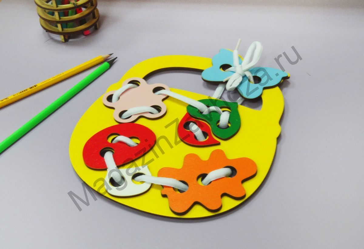 Детская развивающая игра-шнуровка КОРЗИНКА Цель: способствует развитию точности глазомера; тренирует концентрацию внимания, усидчивость; развивает мелкую моторику; помогает подготовить руку к письму.