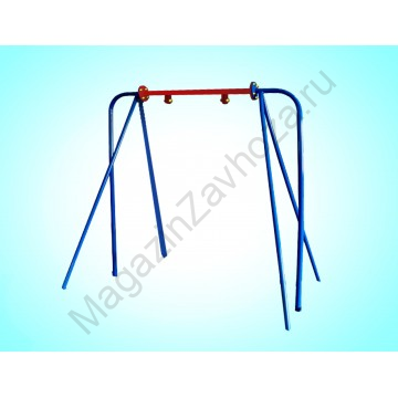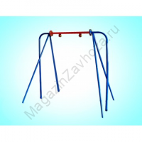 Качели двухсекционные представляют собой устойчивую конструкцию, обеспечивающую безопасное движение сиденья на подвесе. Качели должны состоять из 2-х боковых Г-образных стоек из трубы 32 мм и 4-х раскосов из трубы 27 мм скрепленных с перекладиной через фланцевое соединение и 2-х поперечных тяжей, которые должны крепиться на нулевой отметке, обеспечивая жесткость, пространственную неизменность. Перекладина выполнена из профильной металлической трубы 40*40 мм и скреплена с двумя фланцами с концов.