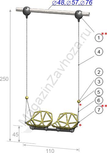 Качели двойные на тросовой системе 250 см с креплением на трубу