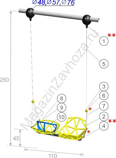 Предназначены для подвешивания на опорную конструкцию с диаметром перекладины 38 мм, 48 мм, 57 мм и 76 мм.