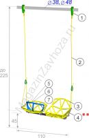 Качели двойные "взрослый-малыш" на веревочной системе до 225 см с креплением на трубу
