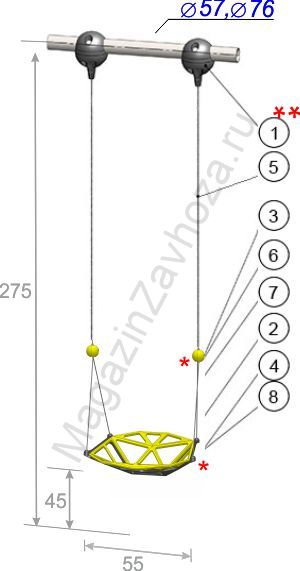 Предназначены для подвешивания на опорную конструкцию с диаметром перекладины 38 мм, 57 мм и 76 мм. или к потолку.