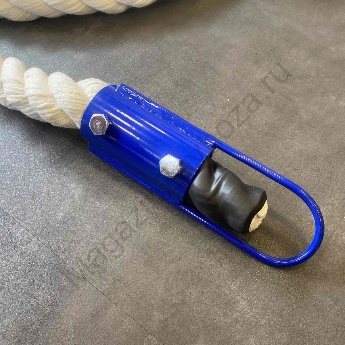 Канат для лазания х/б D-30 мм L=2,5 м. Изготовлен из 3-х прядной крученой хлопчатобумажной пряжи. Для подвески каната служит стальная петля с металлическими щеками закрепленная на одном из концов каната, окрашена эмалью. Второй конец каната для лазания оборудован специальным чехлом для того, чтобы предотвратить распушение. Диаметр - 30 мм. Длина - 2,5 м.
