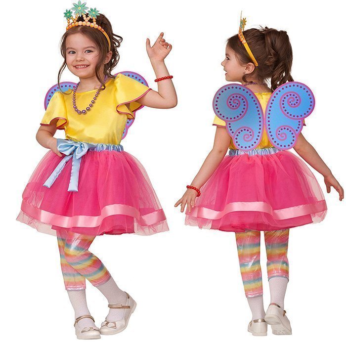 Размер: 49*44*5 см Размер изделия: 104-52 Функционал: карнавальный костюм Упаковка: прозрачный пластиковый пакет Материал: текстиль, пластик Комплект: юбка - 1 шт., лосины - 1 шт. кофточка - 1 шт., крылья - 1 пара, ободок - 1 шт. Страна обладатель бренда: Беларусь Возраст: от 3 лет Производитель разнообразных карнавальных и театральных костюмов "Батик" предоставляет обширный ассортимент нарядов для различных случаев: утренники в детском саду, карнавалы, балы-маскарады, театрализованное представление. Костюм феи довольно реалистичен, он задаст настроение и вызовет улыбки. Забавный новогодний костюм понравится подвижным малышам. Он удобен, не сковывает движений и приятен на ощупь. Наряд сшит из мягкого материала. Дополнит образ оригинальная шапочка-маска. При изготовлении костюмов используются яркие плотные натуральные ткани - стойкие к износу и выцветанию, не мнущиеся, легкие в уходе. Рекомендации по уходу: ручная стирка при температуре 30 С° с применением нейтральных моющих средств; не отбеливать; не отжимать; гладить на низкой температуре.