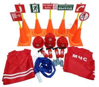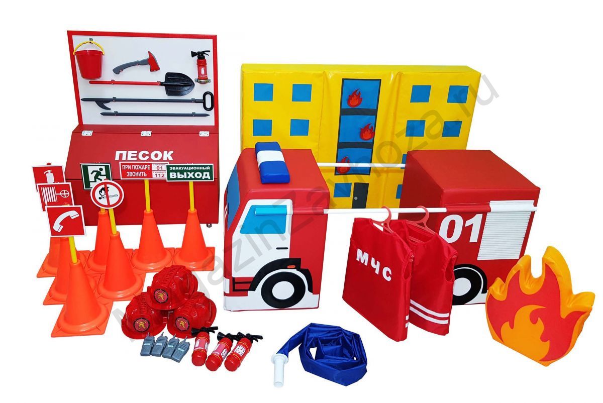 Комплект "Пожарная безопасность" предназначен для обучения детей основным правилам поведения при пожаре. Он позволяет в игровой форме объяснить всю опасность неосторожного обращения с огнем и помогает малышам запомнить первые действия при обнаружении возгорания. Обучающий комплекс "Пожарная безопасность" состоит из следующих элементов: пожарная машина, представляющая собой два отдельных модуля (кабина и задняя часть пожарно-спасательной машины), соединенные двумя деревянными штангами пожарный щит - развивающая игровая панель, все элементы которой выполнены как настоящие. Предметы инвентаря являются съёмными, что способствует более детальному ознакомлению. На щите представлен следующий инвентарь: лом, багор, топор, лопата штыковая, огнетушитель и ведро знаки пожарной безопасности (7 шт.), знаки обозначения средств пожарной сигнализации, эвакуационных путей и пожарно-технической продукции модуль «пламя» и здание с аппликацией «огонь» на липучке дополнительные аксессуары: пожарный рукав, накидки, огнетушители, каски, рации пожарных На пожарной машине и щите установлены роликовые опоры для комфортной легкой эксплуатации. По окончанию занятий с детьми, все мелкие детали игрового комплекса возможно убрать в ящик пожарного щита. Мягкие модули изготавливаются из влагостойкой мебельной винилискожи ярких цветов. Все деревянные изделия тщательно отшлифованы и покрыты безопасной акриловой краской, либо обиты винилискожей. При производстве используются неаллергенные материалы российского производства. Минимальный размер игровой зоны: 2х3 м. Изделие сертифицировано.