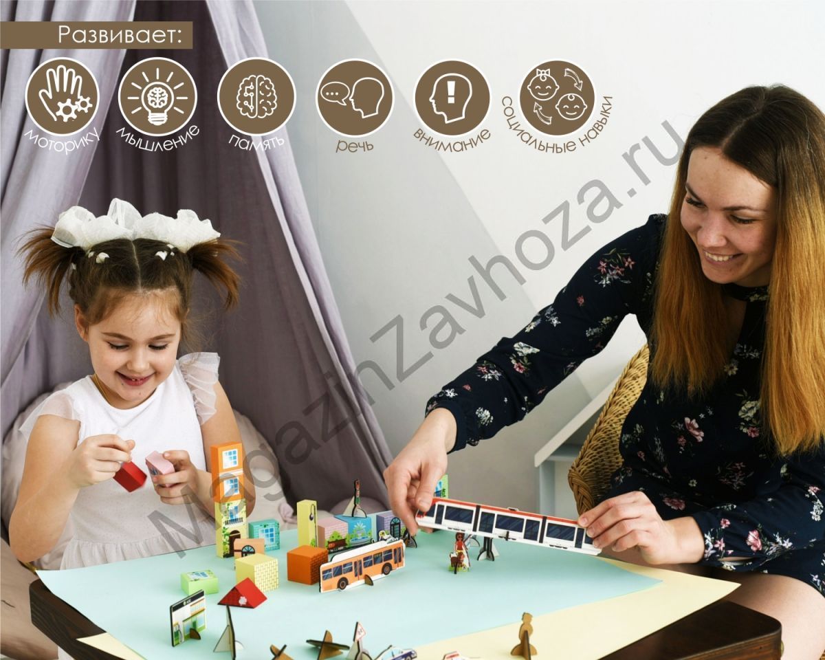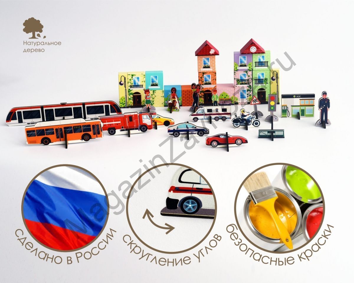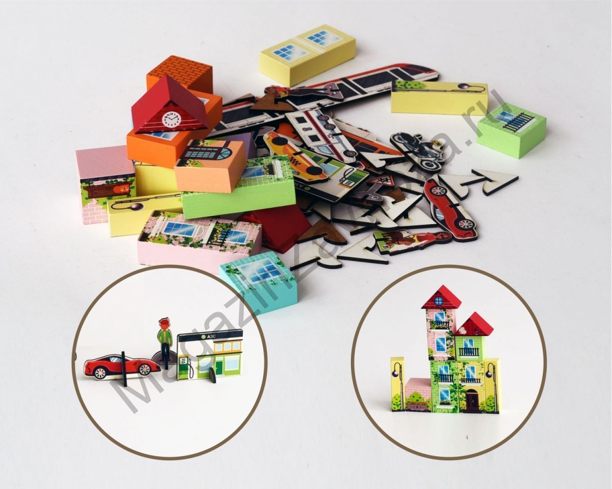 Конструктор деревянный СТРОИМ СОВРЕМЕННЫЙ ГОРОД ;поставляется в 1 картонной коробке (21,5*17,5*4 см)