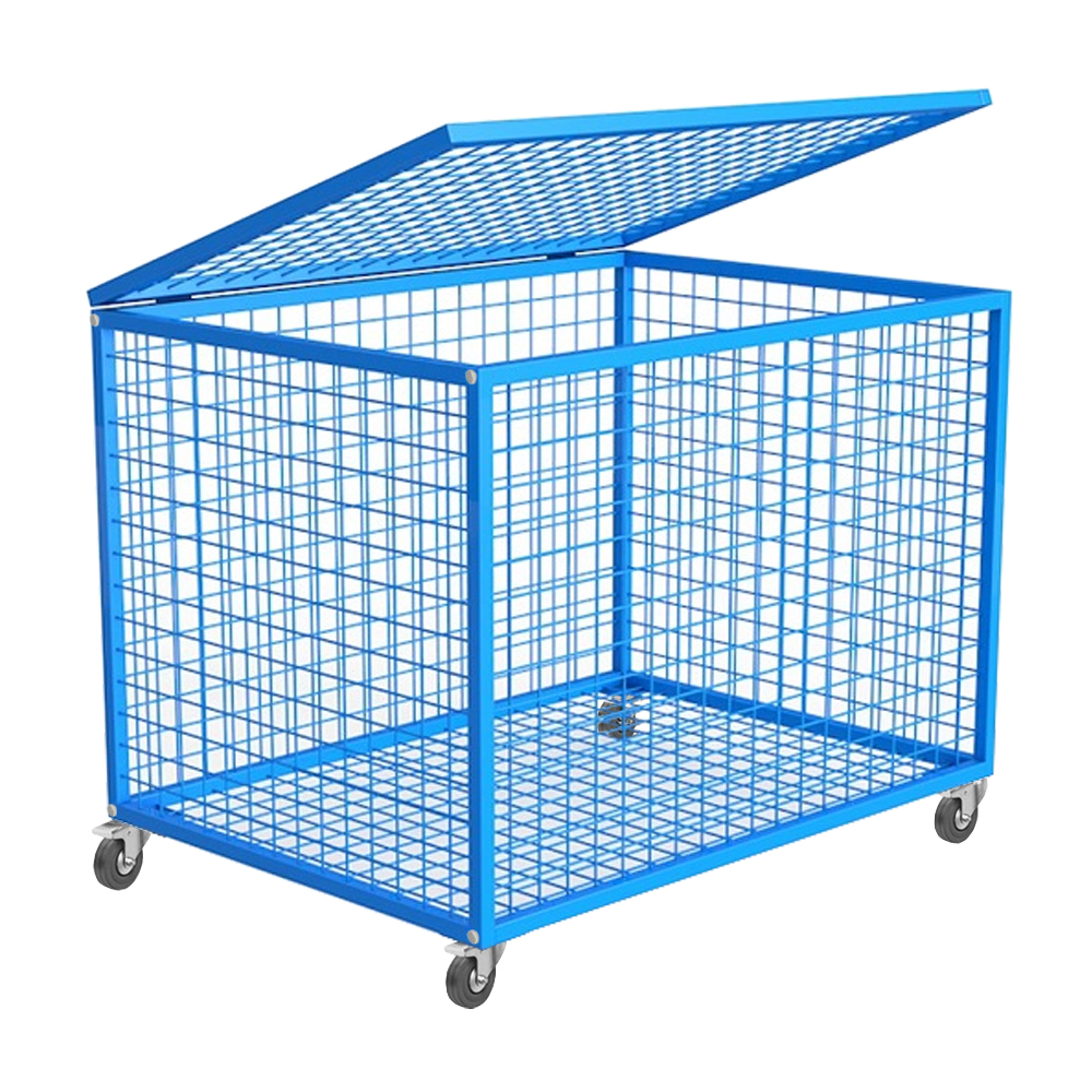 Из метал.трубы-квадрат 25х25 Сетка из прута 3,5 мм , ячейка 50х50мм Покрытие: полимерно-порошковое Цвета: смотреть в каталоге ЦВЕТА МАТЕРИАЛОВ. Конструкция разборная. На поворотных усиленных резиновых колёсных опорах, 2 из них со стопором (тормозом). Размеры: 1050х750х750мм Вес 33 кг. Объём 0,12 м/куб.