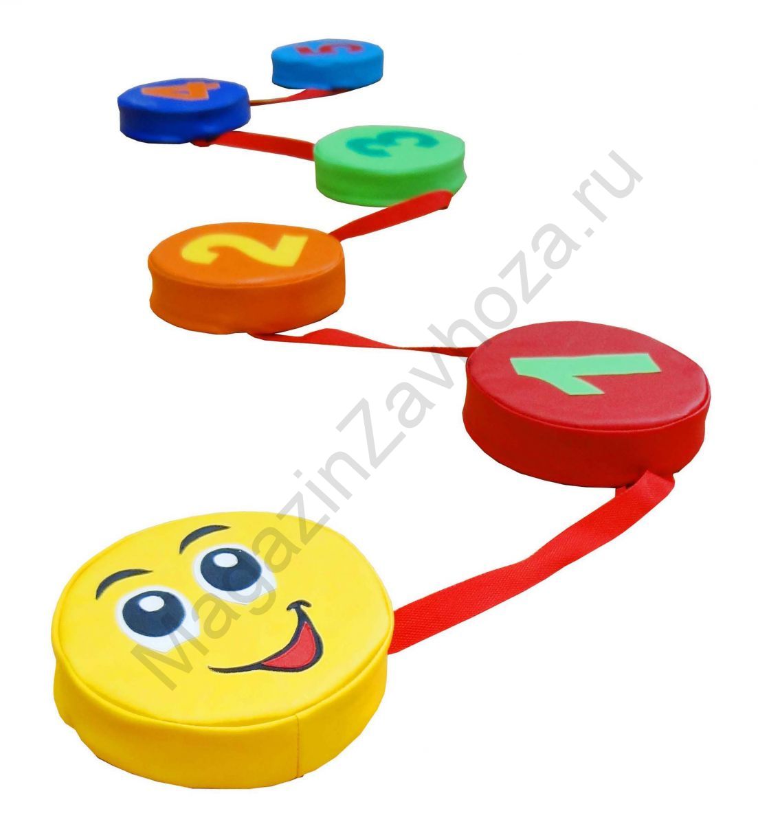 Размер (см): 20*5. Змейка-шагайка состоит из шести мягких ярких таблеток, соединенных между собой стропой. Малыши с радостью будут шагать или прыгать с одной подушки на другую на раз-два-три. А аппликации, нашитые на таблетках, помогут деткам усвоить счет до пяти. Занятие на дорожках помогают улучшить координацию движений, ловкость, устойчивость, развивает опорно-двигательный аппарат.