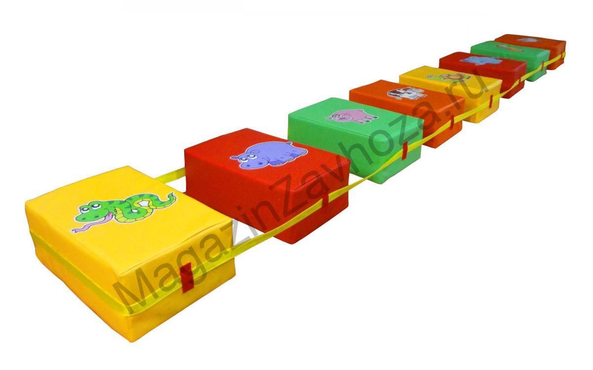 Координационная игровая дорожка "Прыг-скок" используется для развития координации при ходьбе и беге, профилактика плоскостопия и нарушений осанки. Позволяет укрепить мышцы, развить координацию движений и равновесие. Забавные и яркие зверюшки, изображенные на каждой таблетке, превращают занятия в увлекательную игру и очень нравятся деткам! Дорожка состоит из восьми подушечек размером 40х25х15 см. По периметру модуля пропущена ременная лента, позволяющая регулировать расстояние между элементами. В качестве наполнителя используется упругий поролон. Материал обшивки – влагостойкая мебельная винилискожа.