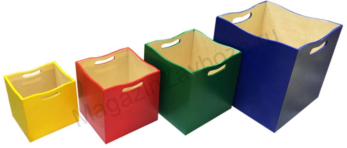 Кубы-вкладыши по типу матрёшки. Большие кубы из фанеры. В комплекте четыре куба разных цветов. Предназначены для игр, занятий физкультурой, хранения игрушек и инвентаря. На них можно сидеть. Можно использовать для фотосессий. Удобные ручки для переноски. Компактное хранение. Кубы окрашены акриловыми красками на водной основе, что безопасно для здоровья детей. Габаритные размеры кубов: 200, 260, 300 и 400 мм. Кубики выполнены из фанеры толщиной 10 и 15мм.