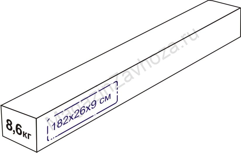 Длина -- 180 см. Ширина -- 26; Высота -- 31. Гарантия -- 3 года.