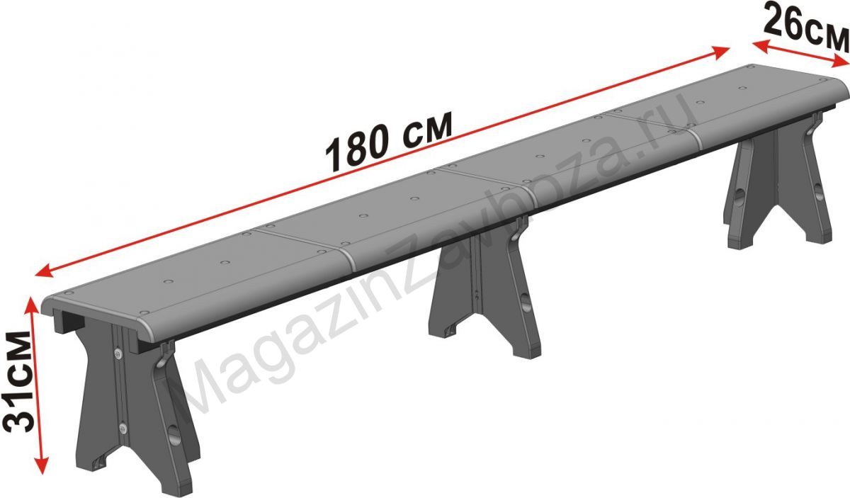 Эти скамейки подходят и для бассейнов. Не боятся воды и высокой влажности. Длина -- 180 см. Ширина -- 26; Высота -- 31. Гарантия -- 3 года.