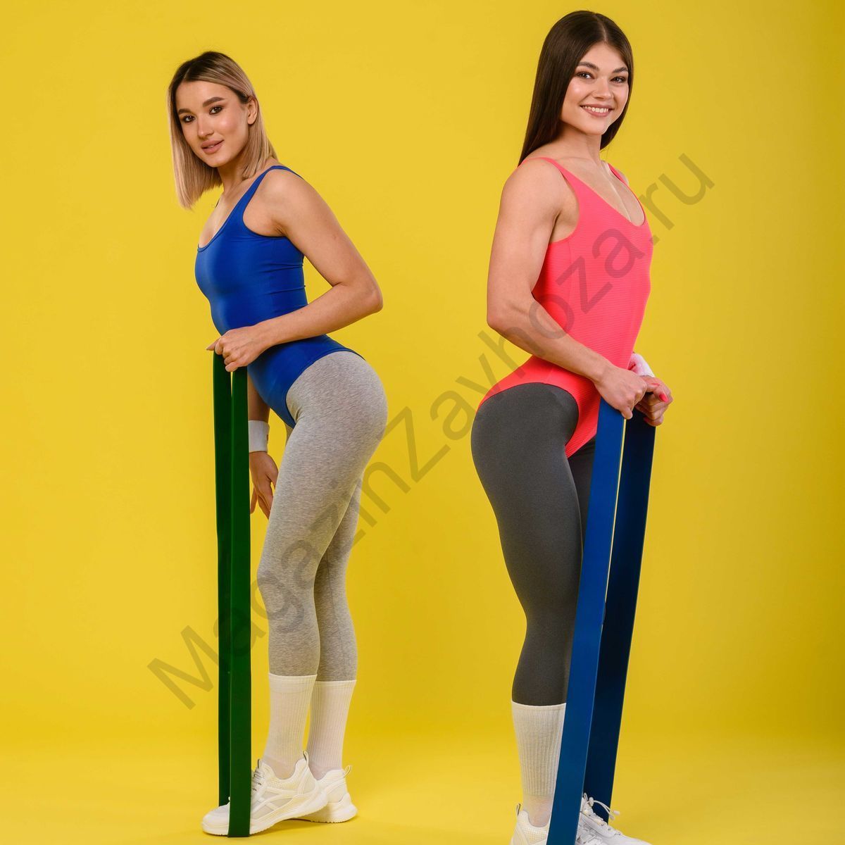 • Синий ленточный эспандер шириной 63 мм имеет нагрузку от 30 до 90 кг