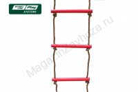 Лесенка с пластиковыми перекладинами имеет одно подвесное кольцо сверху. Узлы типа ‘сквозь и вокруг’ не позволяют ступенькам проворачиваться. Кольца изготовлены из оцинкованной стали.