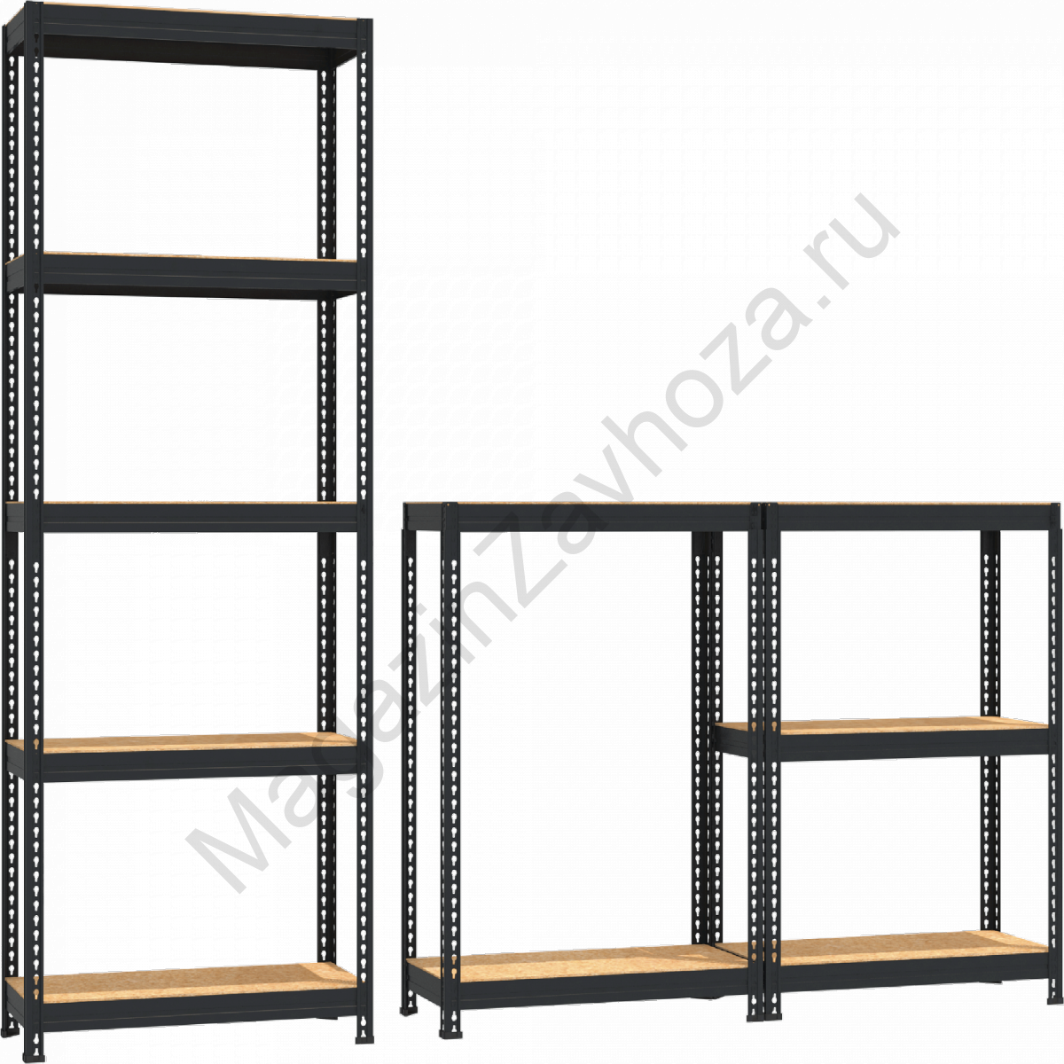 Составные стойки позволяют собрать 2 низких стеллажа, но т.к. в комплекте только 4 подпятника, то необходимо будет приобрести 4 дополнительно.